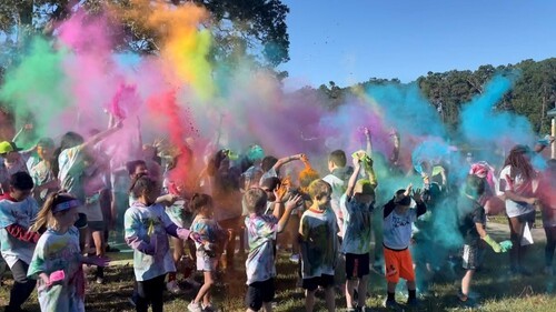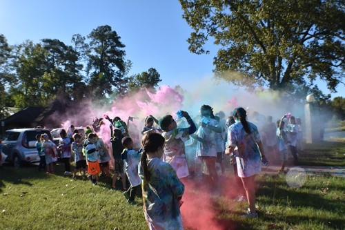 - Runners are doused with color at various stations along the track ending with a color CELEBRATION at the finish line.